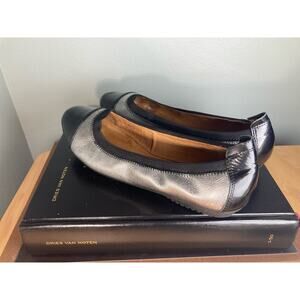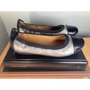 Joseph Seibel Pippa Ballet Cap Toe Black Patent Silver Flats ~ Sz 40 Ah Comfort!