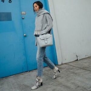 Joseph / Snake-skin effect grey ruched heeled leather ankle boots booties 36 6