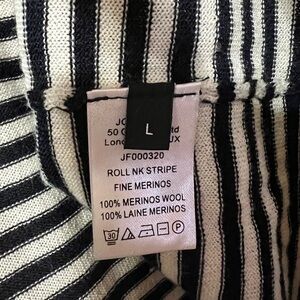 Joseph | Stripe Merino Wool Roll Neck Turtleneck Sweater Long Sleeve Top Size L
