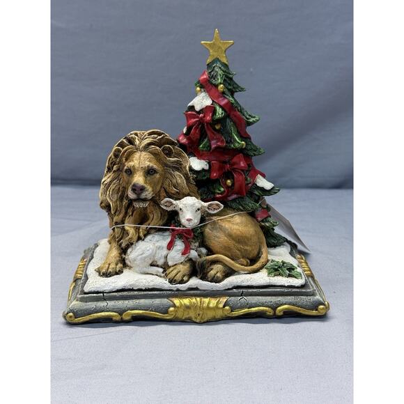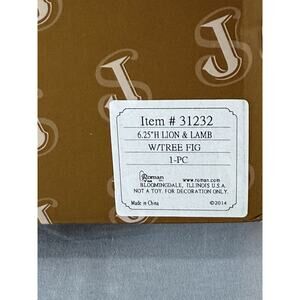 Joseph Studio 6.25" Lion & Lamb With Tree Figure. Item - 31232. New in box. This beautiful figurine captures a serene moment with a lion and lamb resting peacefully beneath a tree. A wonderful piece to add to your collection or to give as a thoughtful gift. It is new in its original box, ready to be displayed and cherished.