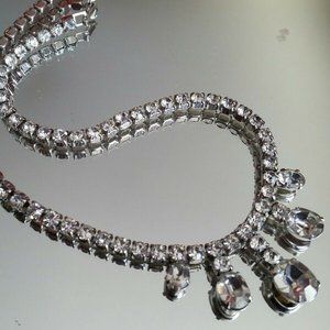 Vintage Joseph Wiesner N.Y. Large Clear Rhinestones Necklace Signed 14.5", an extender can be added to make it longer.
