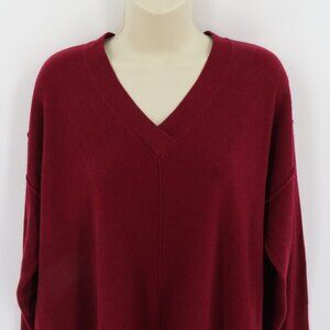 Joseph Womens Large Red V Neck Tunic Sweater All Soft Wool Pullover Tight Knit