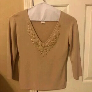 Preowned/size small/ embellishments around front collar/tan in color/ great condition
