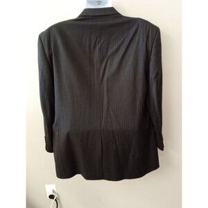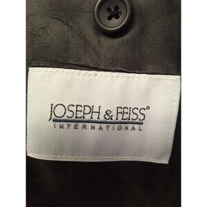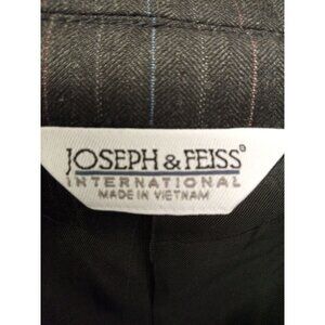 • Joseph and Feiss International Men's Black Pinstriped with Suit Jacket and Pants Set Multiple Pockets Pink and Blue Pinstriping Measurement Lying Flat Pit 2 Pit 20 in Shoulder 2 Hem 33 in Pant Waist 40 in Inseam 28 in Rise 13 in