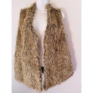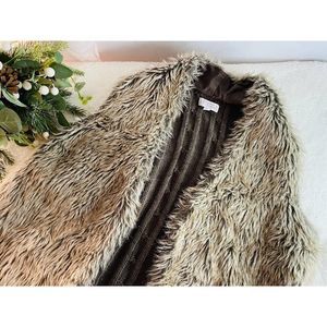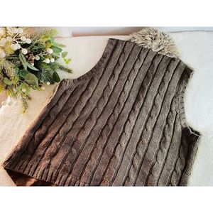 Stylish Brown Sleeveless Faux Fur Vest with cable knit sweater back.