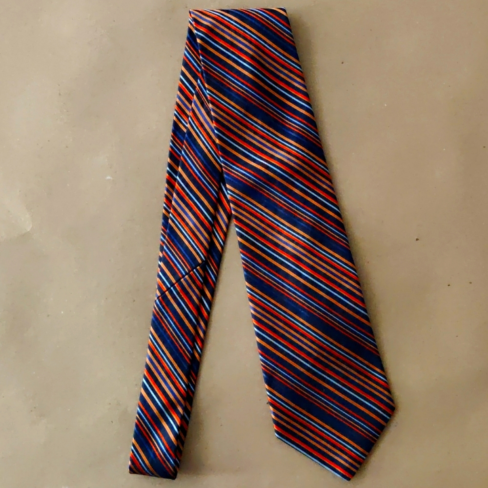 This is a brand new limited run Joseph&Lyman tie. It's a blue, red, and orange stripped tie.