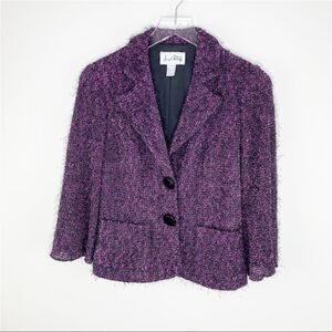 Joseph Ribkoff Purple Eyelash Boucle Blazer Jacket w/Knit Bell Sleeves Sz 6