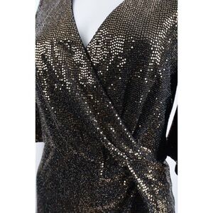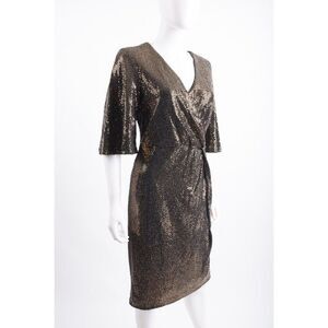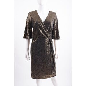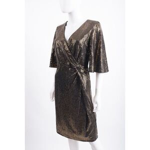 Joseph Ribkoff Womans Dress Size 10 Gold Metallic on Black Flare Sleeves