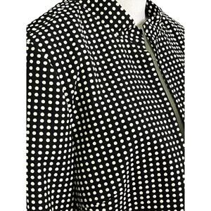 josephine, dot print jacket, polka dot jacket, black and white jacket, size 12 jacket, lightweight outerwear, spring jacket, collared jacket, office layering, vintage style, retro print jacket minimalist outerwear