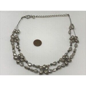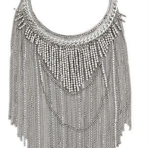 💎Josephine CHICOS Bib Strand Statement Necklace Silver Chains Rhinestone Fringe