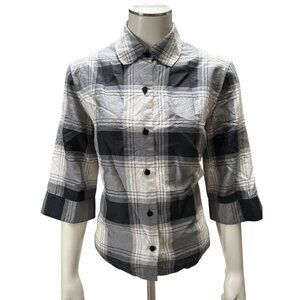 Josephine Chaus 10P Vintage Silk Plaid Blouse Black Gray Uptown Archivist Style