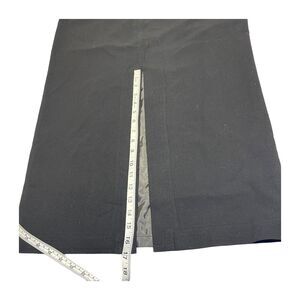 The black skirt features a solid pattern with a back slit, zipper closure, and stretch for a comfortable fit.