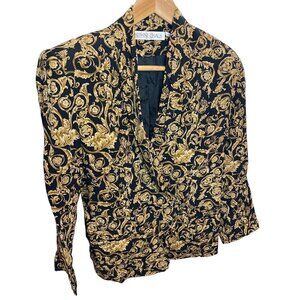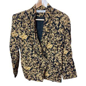 Josephine Chaus Black Gold Scrollwork Buttoned Blazer Sz 4