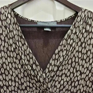 Josephine Chaus Brown Coffee Bean Print Sleeveless Blouse Size XL.