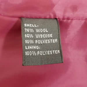 A stunning Josephine Chaus mauve jacket with slightly ruched collar. Size 12. 5 hidden snap closures. 2 front pockets. Slit bottom sleeves and jacket front. Fully lined. 76% wool, 14% viscose, 10% polyester. Approx. Chest, 20.5” laying flat, sleeve 24”, neck to bottom 24”. Excellent pre-owned condition – no rip, tears, stains. Top button missing can easily be replaced. From a smoke free, pet free home. Black flower pin not included.