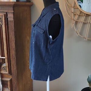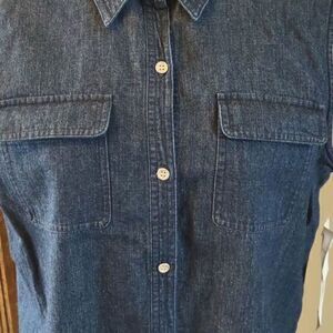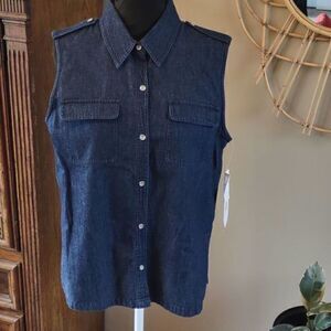 Josephine Chaus Petite Sleeveless Cotton Button Down Denim Shirt Sz L