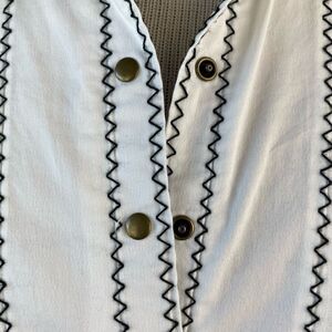 Love the black stitched style on this top and the super cute snaps. It measures 19 inches armpit to armpit laying flat and 23 inches in length from shoulder to hem.