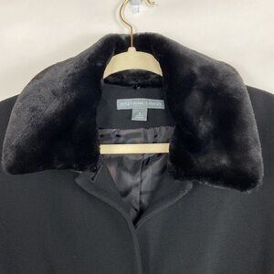 Excellent Condition Josephine Chaus 100% Virgin Wool Detachable Vegan Fur Collar Long Sleeve Button Front Career Blazer Suit Jacket
