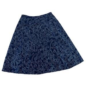 Josephine Chaus Women Navy Silk Skirt Size 8 Silver Metallic Embroidered Party