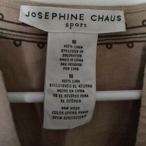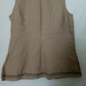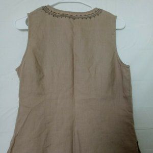 Josephine Chaus Women's Blouse Tan Linen Top Sleeveless Y-Neck Side Zip Size 10