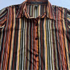 Josephine Chaus Women's Button Up Blouse Size 6 Orange/green Multi Stripe