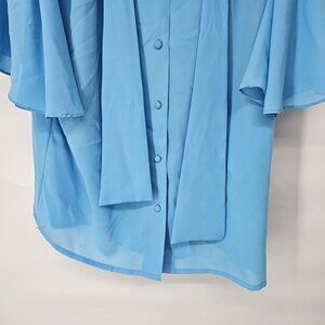 Josephine Shirt Womens 16 Blue Flutter Sleeve Button Up Vintage Style Bow Blouse