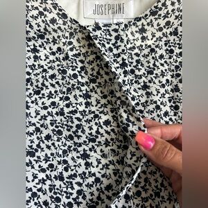 Josephine vintage 80s dark navy and white button up blouse and skirt set. Clean and no flaws.