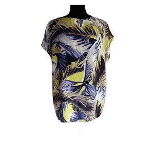 Josephine Chaus Blue Green Abstract Print Short Sleeve Pullover Top Size L