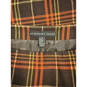 Beautiful wool blend brown/orange plaid wrap skirt by Josephine Chaus, size12. Lined.