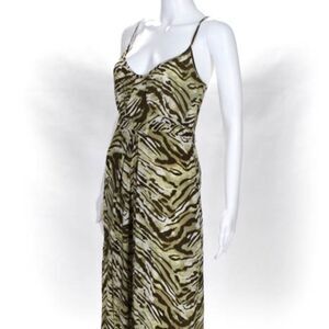 Josephine designer silk, printed, maxi dress. Bust: 30", Waist: 26", Hips: 36', Total length: 53". Zipper closure. Size: Petite
