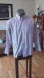 For sale is a button down long sleeve shirt in white with red and black stripes by Jos. A. Bank. This is from their Traveler line. It is 100% cotton and Traditional Fit. The size is L. It has a single pocket on the left breast. The condition is excellent. No stains, rips, or funky smells.