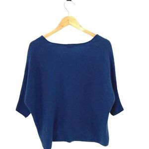 Joshi Womens V-Neck Dolman Sleeve Cashmere Pullover Sweater Blue Small