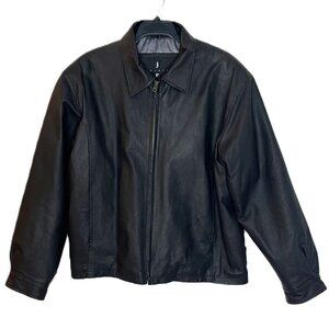 Joshua Ross Black Leather Zip Up Jacket Pockets Buckle Accents XL