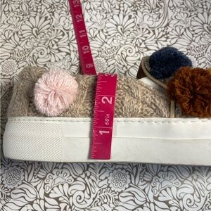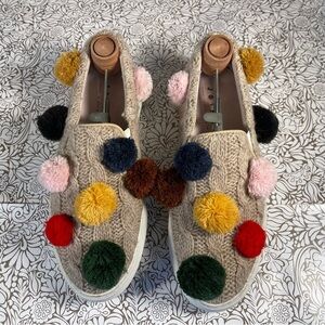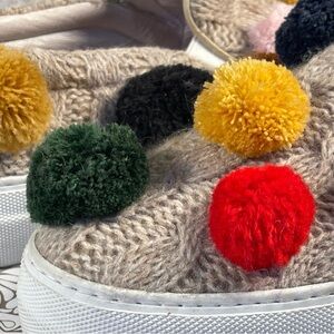 Joshua Sanders Tan Cable Knit Pom Pom Sneakers.