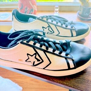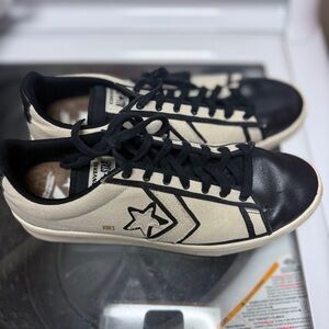 RAREš„ Sz 11.5 Converse Joshua Vides PRO Leather OX Men's Shoes Natural Ivory-Black Classic Converse sneakers with a sleek black and white design. Perfect for everyday wear.