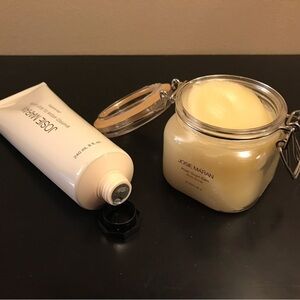 Josi Maran Luxurious body butter and sugar scrub duo. Enriched with argan oil. Ideal for nourishing skin. Includes 8 OZ Whipped Argan Oil Body Butter in Love Potion & Argan Sugar Balm 10 OZ Body Scrub in Love Potion.