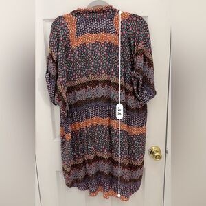 Josie Natori 100% Rayon Shirt Tunic Dress Size XL Colorful Floral Artsy Buttons