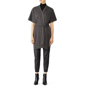 Josie Natori Anthracite Grey Short Sleeve Brushed Wrap Cardigan Women's X-Small