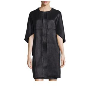 This chic and modern Josie Natori coat is crafted from foiled ottoman jersey, giving it a subtle sheen and structured texture. Designed in a fortune cookie shape, this elevated kimono-style topper features a relaxed fit, wide kimono sleeves, and a sophisticated drape. Perfect for layering over evening wear or adding a luxurious touch to everyday outfits.