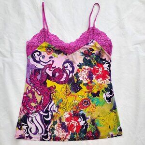 Josie Natori EUC Lace Trim Dragon Floral Silky Cami Tank Top Y2K Feminine Size S