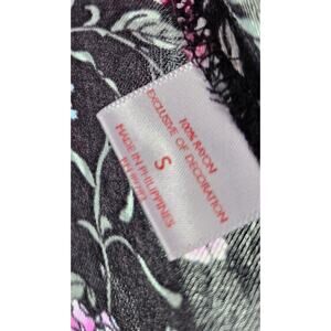Josie Natori Pajama Top Womens Small Black Pink Floral Button Up Blouse Flowy