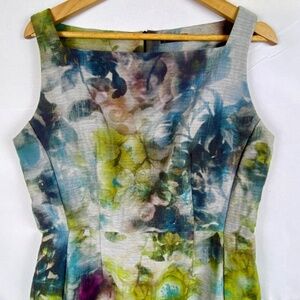 Josie Natori Women's Sleeveless Midi dress Sz 8 Sheath Watercolor Square neck