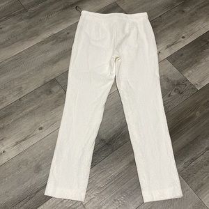 Fashionable cotton twill trousers with a flat front and side zip closure.