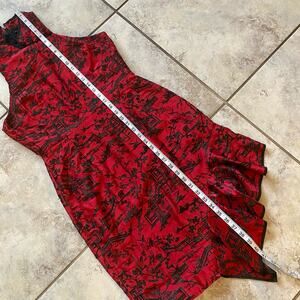 Josie Natori size 10 Silk Pagoda Embroidered Red Black Cheongsam Cocktail Dress
