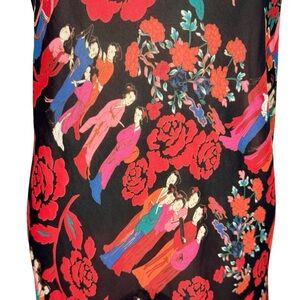 The ultimate Y2K slip dress moment. This pattern is everything! The top features a ditsy floral and the bottom is a Japanese motif with geisha girls and roses. Adjustable spaghetti straps with bead detail. Slightly sheer. Wear it as loungewear, layering it for streetwear with a pair of chunky boots, or styling it as a sultry night-out look.