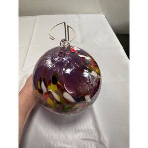Joska purple mosaic hand blown Germany glass orb ornament Vtg with tag 14”