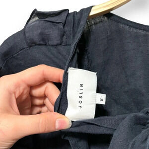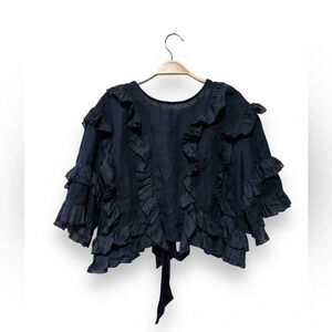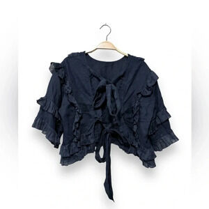 Joslin 100% Linen Navy Blue Ruffle Bow Victorian Lolita Blouse Top Size 4 US