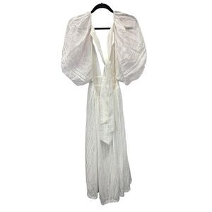 Joslin Anthropologie White Julianna Cotton Maxi Dress 4 Puff Sleeves Open Back