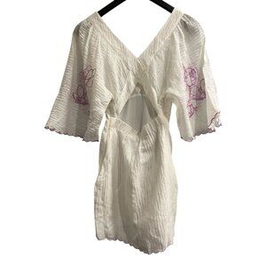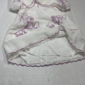 Joslin Dress Womens US 2 Isodora White Purple Silk Linen Embroidery Floral Mini