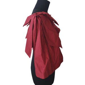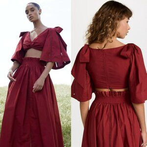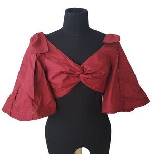 NEW Joslin Hollie Cotton Crop Top Red Tie Front Flutter Sleeve Lace Insert Boho